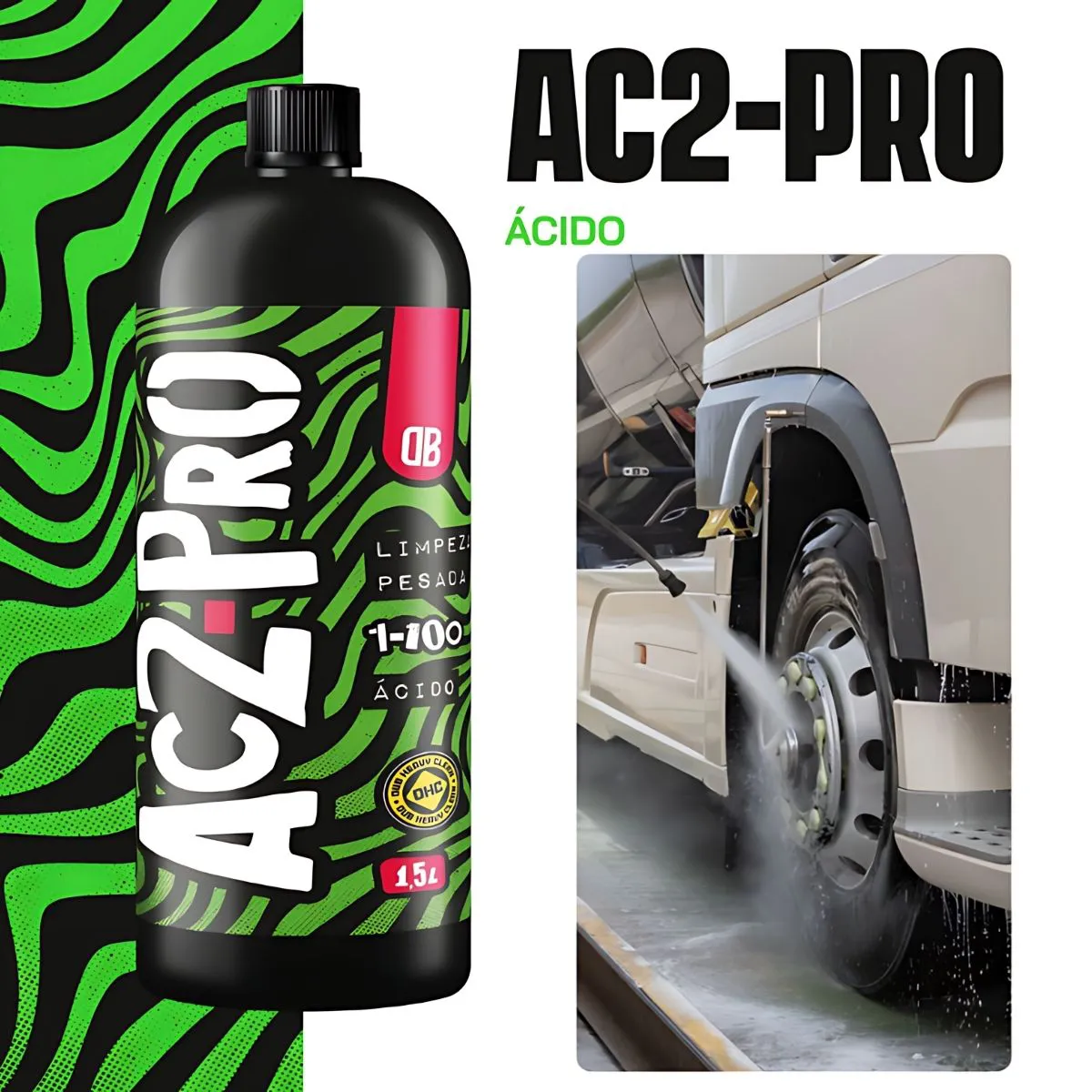 O AC2-PRO da Dub Boyz é um limpador ácido concentrado de 1,5 litro, especialmente desenvolvido para limpezas pesadas em veículos. Sua fórmula com pH 2 tem um alto poder desincrustante, removendo sujeiras inorgânicas, óxidos e terra.