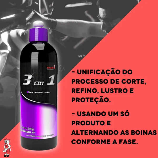 Ao contrário de outros produtos no mercado, o COMPOSTO POLIDOR 3 EM 1 REFINO LUSTRO E PROTEÇÃO 500ML LINCOLN é o parceiro ideal para quem busca praticidade e alto desempenho. Confira os principais benefícios: