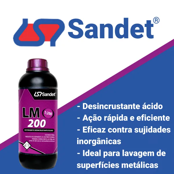 Transforme sua rotina de limpeza com o Detergente Desincrustante Ácido LM 200 da Sandet, em sua prática embalagem de 1 litro. Desenvolvido para lidar até com os desafios mais difíceis, este detergente ácido de uso profissional é a solução ideal para remover resíduos persistentes, calcário, ferrugem e sujeira incrustada de diversas superfícies. Seja para limpar equipamentos industriais, cozinhas comerciais ou pisos muito sujos, este produto garante desempenho potente e eficaz sempre.
