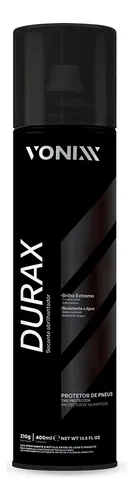 DURAX Protetor de Pneus Aerossol 400ml Vonixx é o aliado perfeito para quem deseja manter o visual dos pneus sempre impecável e protegido. Este produto foi desenvolvido com uma fórmula especial que combina praticidade, durabilidade e alto desempenho, garantindo uma aplicação simples e eficiente. Se você busca um produto que une funcionalidade e estética, DURAX é a escolha ideal.