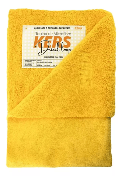 KIT TOALHA DE MICROFIBRA AMARELA DUAL LOOP 60X40CM 360GSM COM BORDA KERS