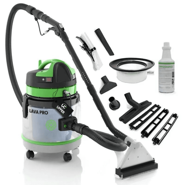 Extratora ideal para limpeza residencial, com conjunto de acessório completo para aspiração e lavagem de carpetes, tapetes, estofados e pisos frios.