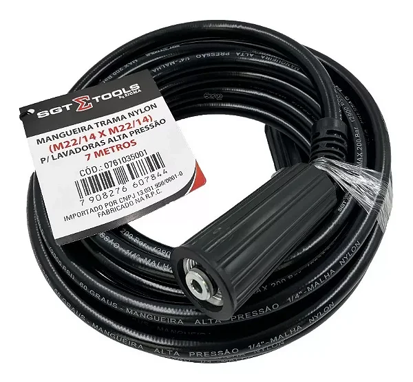 Com 7 metros de comprimento, a mangueira oferece amplo alcance, permitindo que você se movimente livremente pela área de trabalho sem precisar reposicionar constantemente a lavadora de alta pressão. Compatível com uma ampla gama de lavadoras de alta pressão, a mangueira Sigma Tools é um complemento versátil para o seu arsenal de limpeza. Seu design intuitivo garante uma experiência descomplicada, para que você possa se concentrar em obter resultados de limpeza excepcionais. Invista na mangueira de nylon Sigma Tools MANGUEIRA TRAMA e experimente a diferença em desempenho e durabilidade.