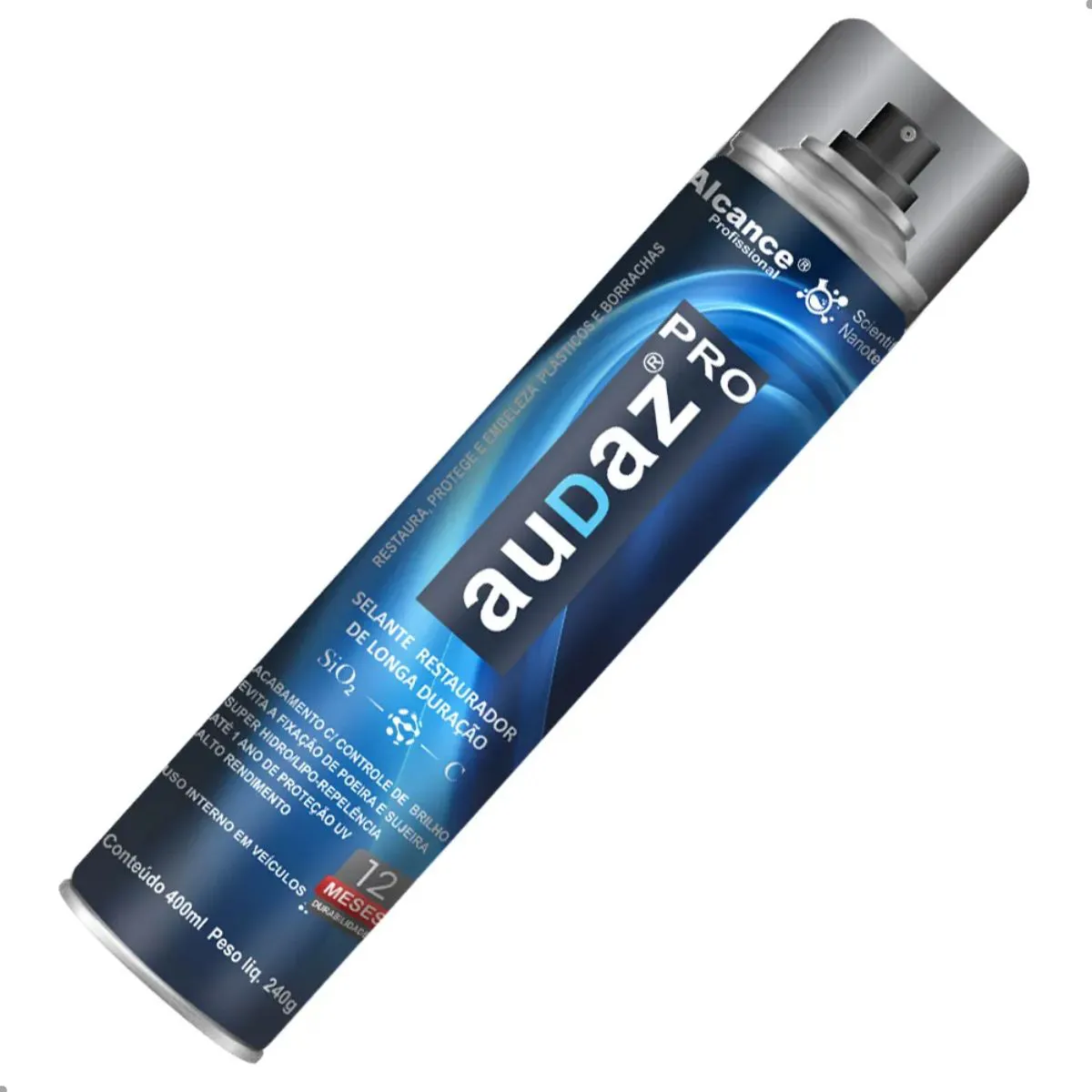 O Selante Restaurador Audaz Aerossol Pro 400ml Alcance restaura, protege e revitaliza superfícies automotivas, formando uma camada durável contra sujeira, raios UV e intempéries. Prático de aplicar, garante brilho intenso e acabamento profissional em plásticos, borrachas e partes externas do veículo.